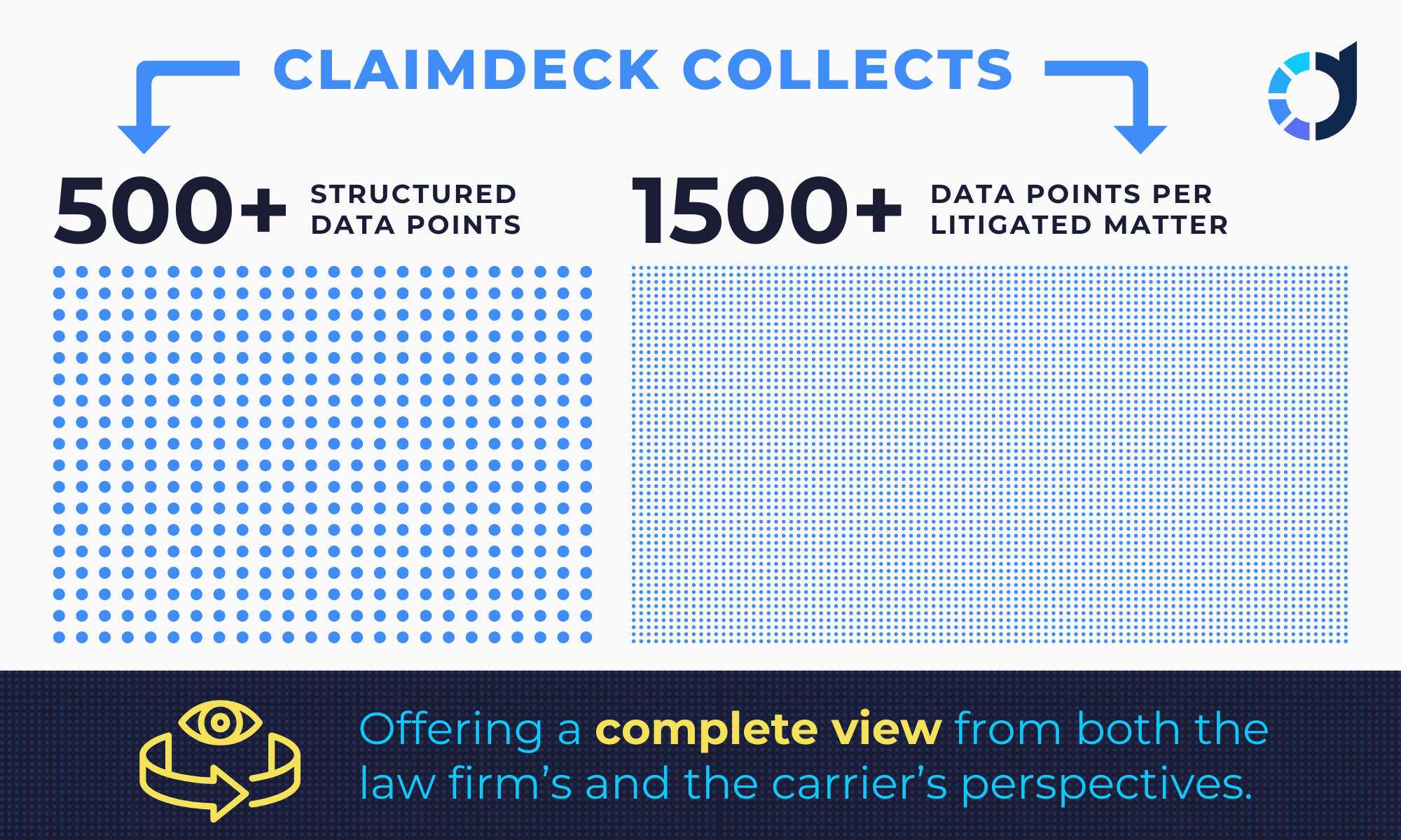 Comprehensive Data Capture: ClaimDeck collects 500+ structured data categories and 1,500+ data points per litigated matter — offering a complete view from both the law firm’s and the carrier’s perspectives.